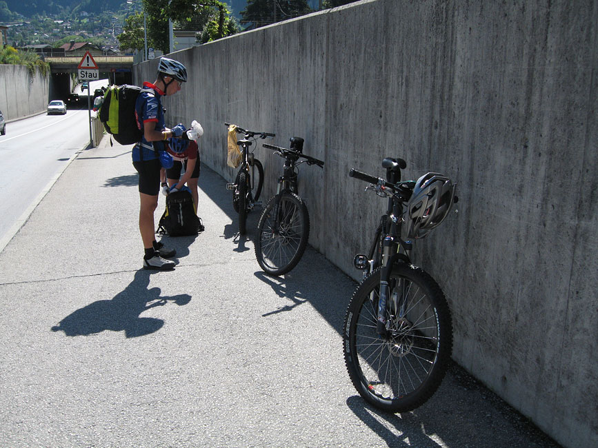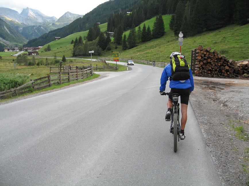 Als die Abfahrt zu Ende war musste ich mich noch durch das Tal hinein nach Hintertux quälen, und es war eine echte Qual. Nicht einmal der massive Hormonschub der kam als mir die gesamte weibliche russische Snowboardnationalmannschaft talauswärts entgegen gelaufen kam (vorneweg ein blonder Engel) konnte mir noch Flügel verleihen. Den Weg von der Hauptstrasse bis zu unserer Unterkunft schob ich mein Rad, und nachdem ich Dusche und Essen hinter mich gebracht hatte legte ich mich gleich ins Bett und probierte zu schlafen. In der Nacht hatte ich gefühlte 57,6 Grad Körpertemperatur und trank so nebenbei im Laufe der Nacht noch an die zwei Liter Wasser, und obwohl ich auch am nächsten Morgen immer noch kränklich war fühlte ich mich fit genug um weiterzufahren.